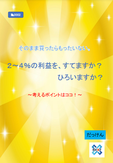 そのまま買ったらもったいない。2~4%の利益を、すてますか? ひろいますか?