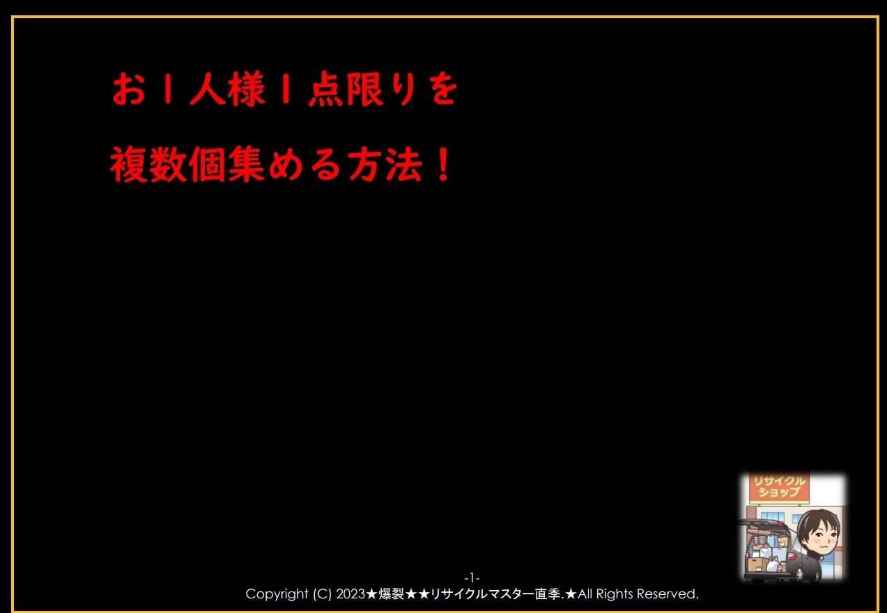 お 1 人様1点限りを複数個集める方法!