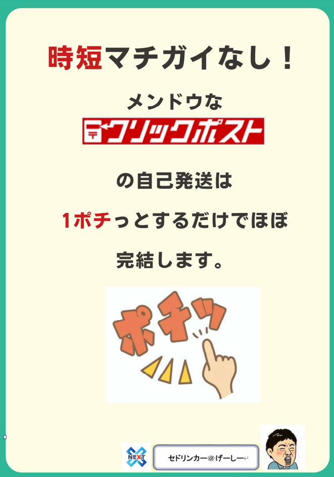 時短マチガイなし!メンドウなクリックポストの自己発送は 1ポチっとするだけでほぼ完結します。