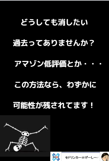 どうしても消せない過去ってありませんか? アマゾンの低評価とか・・・ この方法なら、わずかに可能性が 残されてます!