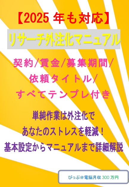 【2025年も対応】リサーチ外注化マニュアル 契約/賃金/募集期間/依頼タイトル/ すべてテンプレ付き! 単純作業は外注化で あなたのストレスを軽減!基本設定からマニュアルまで詳細解説