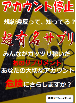アカウント停止 規約違反って、知ってる? 超有名サプリ みんながガッツリ稼いだ あのサプリメント あなたの大切なアカウント 危険にさらしますか?