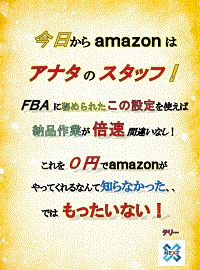 今日からamazonはアナタのスタッフ!FBA に秘められたこの設定を使えば 納品作業が 倍速 間違いなし! これを0円 でamazonが やってくれるなんて知らなかった、、 では もったいない!