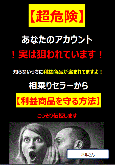 【超危険】あなたのアカウント 実は狙われています!知らないうちに利益商品が盗まれてますよ! 相乗りセラーから 【利益商品を守る方法】 こっそり伝授します