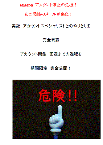 amazon アカウント停止の危機! あの恐怖のメールが来た! 実録 アカウントスペシャリストとのやりとりを 完全暴露 アカウント閉鎖 回避までの過程を 期間限定 完全公開!