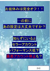 お盆休みは完全オフ!! …の前に あの設定は大丈夫ですか? 知らずにいると セラーアカウント パフォーマンス低下 最悪アカウント停止も?