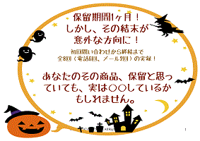 保留期間1ヶ月!しかしその結末が意外な方向に! 初回問い合わせから終結まで 全8回(電話6回、メール2回)の実録! あなたのその商品、保留と思っ ていても、実は◯◯しているか もしれません。