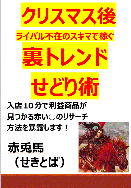 ★クリスマス後★ライバル不在のスキマで稼ぐ★入店 10 分で利益商品が 見つかる赤い○のリサーチ 方法を暴露します!裏トレンドせどり術