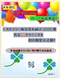 メルカリ、リピート仕入れ、リピート出品商品!! 1カテゴリー毎日売れ続け3000個売る㊙テクニックを初の限定大公開!! 本当は教えたくない売り続ける出品法の紹介