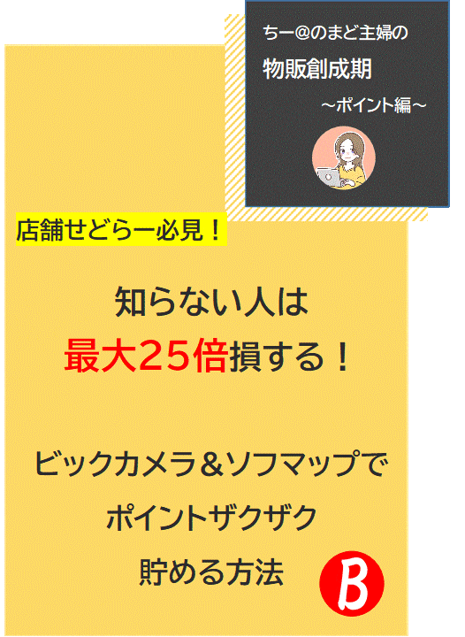ビックカメラ&ソフマップで ・ポイントをザクザク貯める方法 ・あなたに合ったポイントの貯め方 などを紹介しています。 仕入れから日々の買い物にも使える方法です!