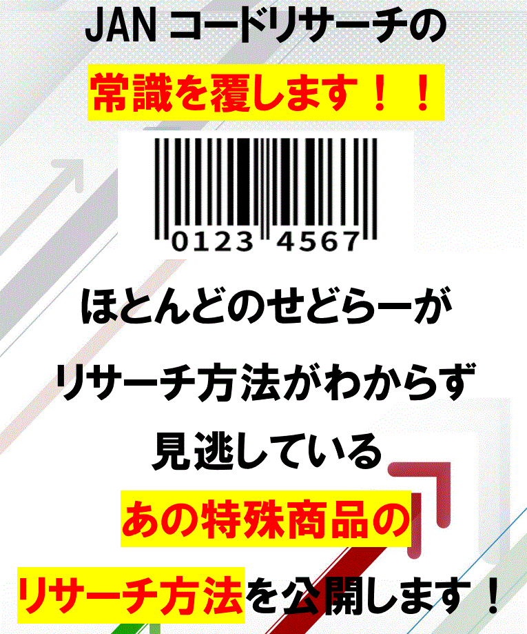 あなたの知らないJANコードリサーチの裏技公開します。リサーチレベルUPさせること間違いなしの内容です!