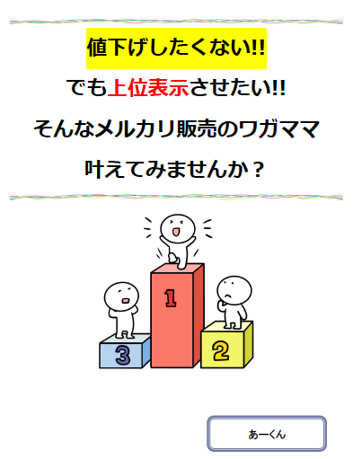 値下げしたくない!! でも上位表示させたい!! そんなメルカリ販売のワガママ 叶えてみませんか?