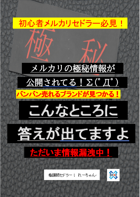 看護師セドラー!れーちゃんのメルカリ必見シリーズ!メルカリの極秘情報が公開されてる!Σ(゚Д゚) バンバン売れるブランドが見つかる! こんなところに 答えが出てますよΣ(゚Д゚) ただいま情報漏洩中!