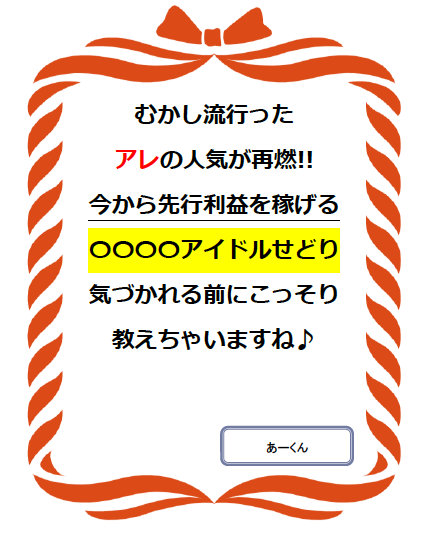 むかし流行った アレの人気が再燃!! 今から先行利益を稼げる 〇〇〇〇アイドルせどり 気づかれる前にこっそり 教えちゃいますね♪