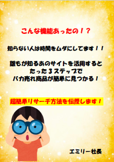 その使い方だと時間をそんしてるかも!? あのサイトを活用すれば、たった3ステップで バカ売れ商品を見つけることが出来ますよ!